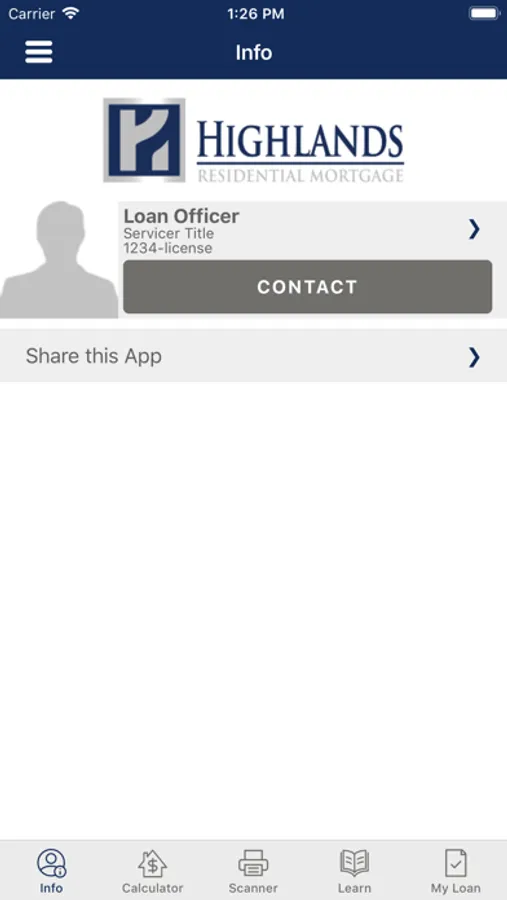 • Easy access to contact information for your Highlands Loan Officer and Real Estate Agent. (You can also share this contact info direct from the app to your friends and family if they need a referral!)