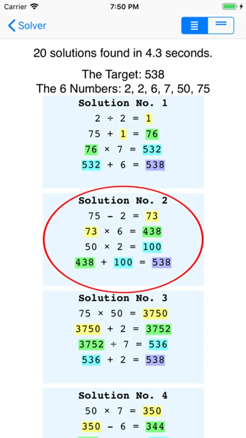 Countdown is a game show on British television (French original: Des chiffres et des lettres). This app reworks the “Numbers” portion of the game show as a Scrabble®-like tile game for your iPhone or iPad. It includes a Universal Solver that finds all possible solutions to any Numbers puzzle you care to throw at it.
