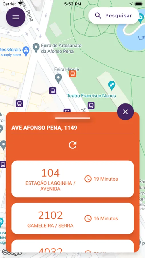 Utilizamos a localização dos ônibus em tempo real para calcular a previsão de tempo de chegada até a parada.