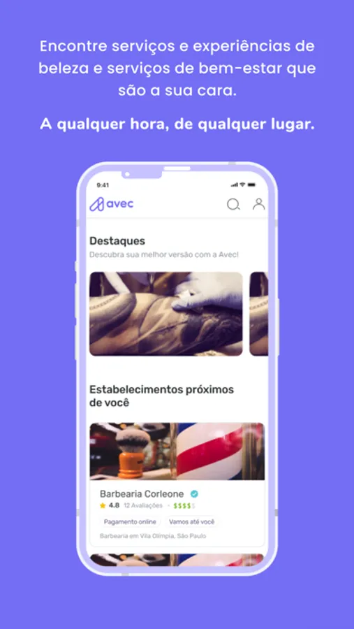 Além do agendamento on-line 24hrs por dia, com a gente, dá pra economizar tempo, conhecer um salão de beleza novo como, quando e onde você quiser, evitar filas e pagar on-line. E tem mais, também cuidamos do seu bolso com o Avec+, nosso serviço de assinaturas que oferece até 40% de desconto em várias experiências de beleza e bem-estar.Legal, né?