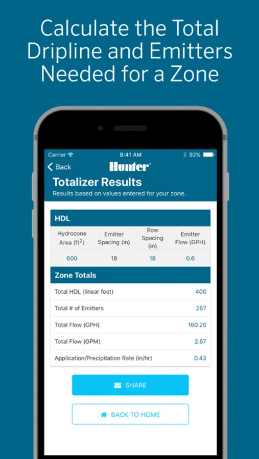 To help you make the most of your micro irrigation design and eliminate the guesswork before starting a project, take advantage of the easy-to-use Hunter Dripline Calculator. The calculator has two handy built-in features: 1) the Zone Totalizer, which calculates the total dripline and emitters needed for a zone, as well as the total flow and application rate, and 2) the Product Recommender, which gives you specific Hunter product and accessory suggestions for your project based on plant, soil, and application types. Try it today!
