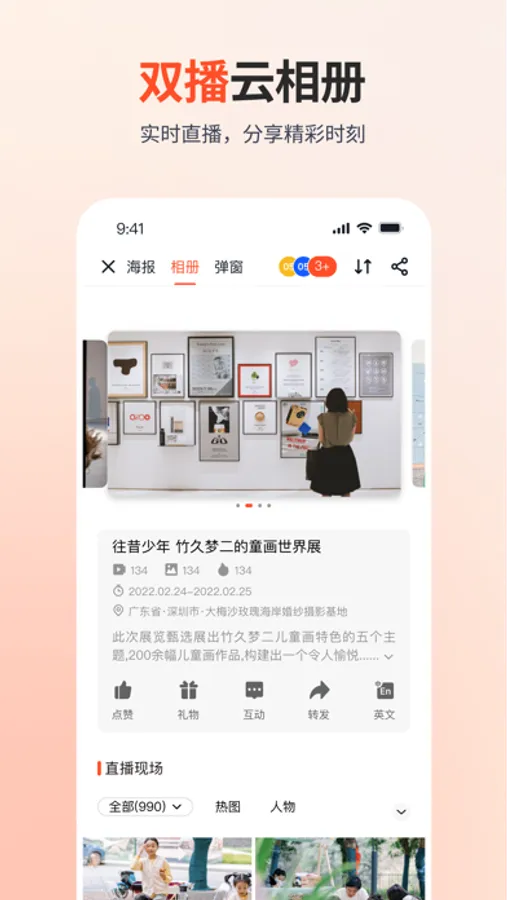 【即时分享】 分享云相册,观众实时浏览/分享/下载照片内容