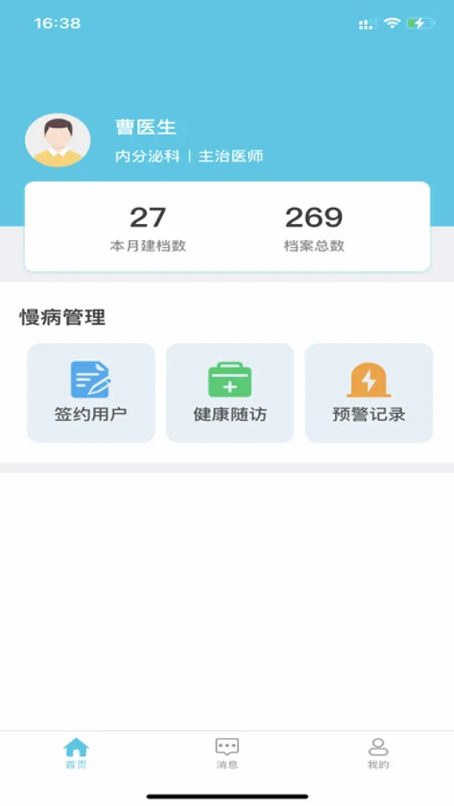 主要功能包含:消息聊天,用户档案查看,签约管理。