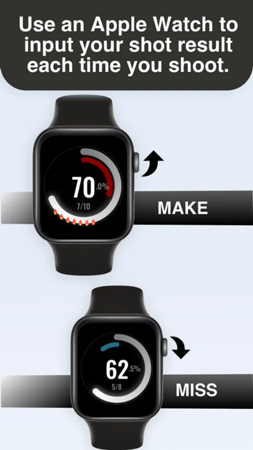 Start a session on your Apple Watch and every time you make a shot, spin the Apple Watch's crown up. Every time you miss a shot, spin the watch’s crown down. When you are done shooting, tap the “Finish” button on your watch. It’s that simple!