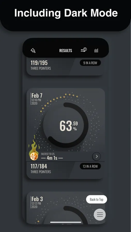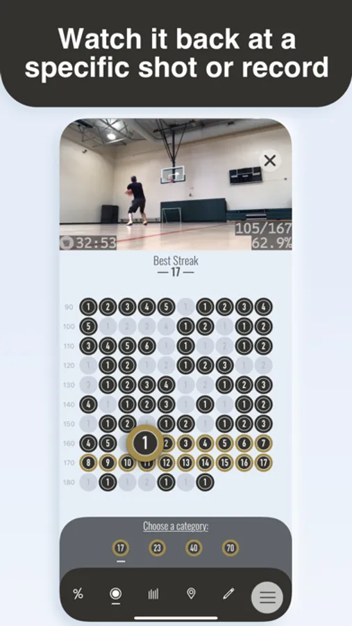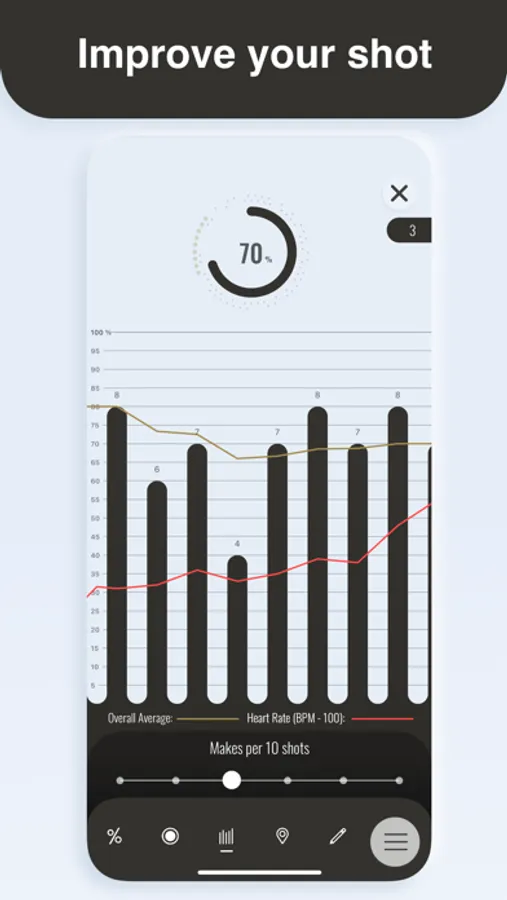 A graph of your results will show you how well you shot over time. Observe your percentages get better and better the more you practice!