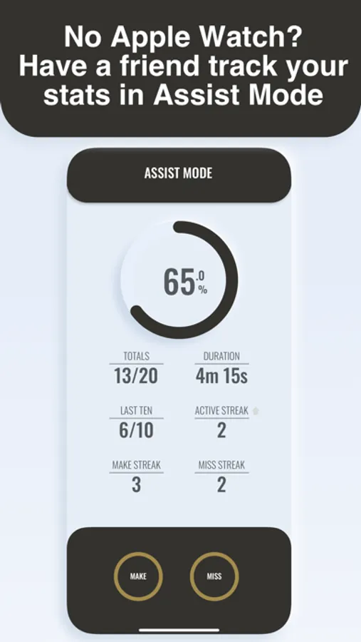 If you don’t have an Apple Watch, you can use Assist Mode to input your shot results. Just hand your iPhone to a family member, friend, or coach and let them input the results of your shots.