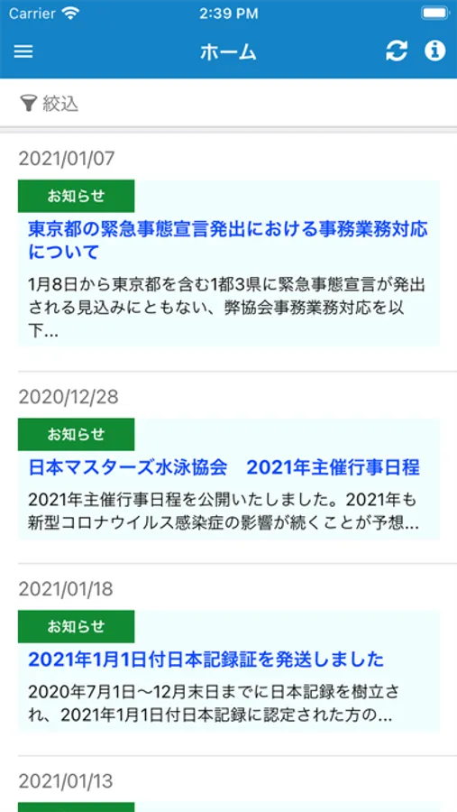 ・イベント・講習会の開催などの情報へアクセスができます。