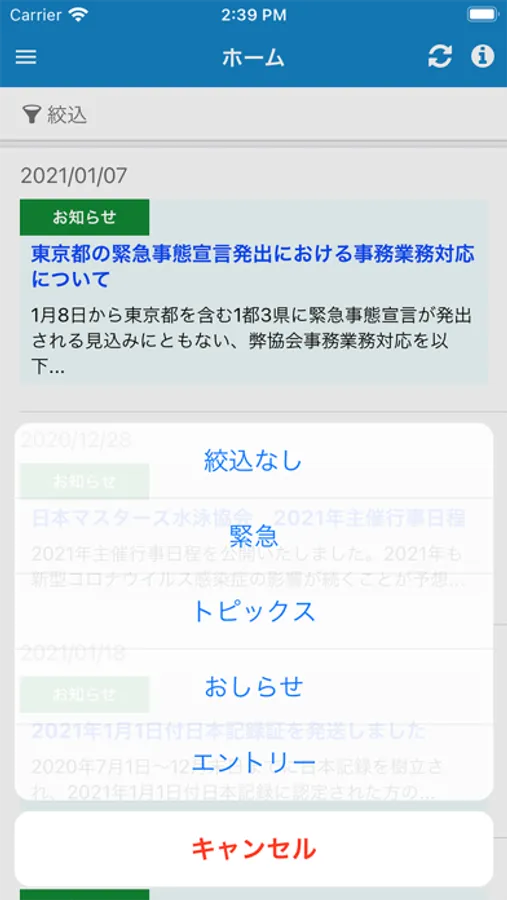 ・お知らせの絞り込み検索ができます。