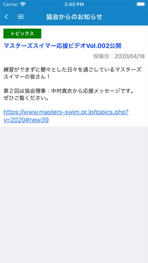 ※本アプリはマスターズ水泳協会の会員専用のアプリです。ご利用にはマスターズ水泳協会の会員登録が必要です。