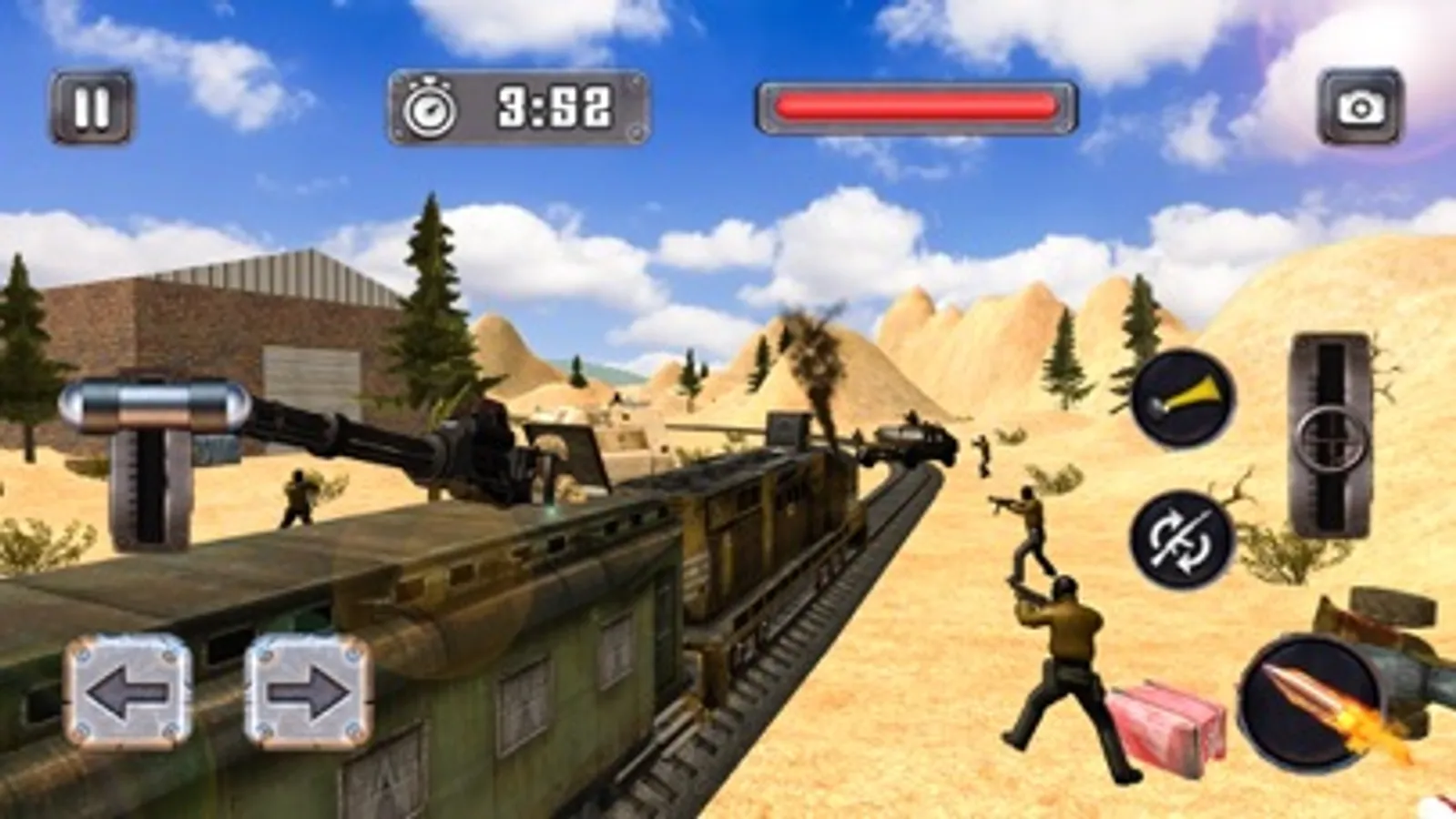 Play the newest adventure of train driving and rescue ops. Play as army train driver your train engine is equipped with heavy machine gun, anti aircraft gun and more. The enemy will strike the army cargo train to steal the cargo from army forces. As one man army commando use your sniper shooting and war skills to defeat the forces and win this war. Drive train across snowy land, barren desert and lush green forest. The enemies are equipped with gunship helicopters, tanks, armored cars and soldiers. Use all of your ability to become sole survivor hero in this battlezone using all weapons firepower.