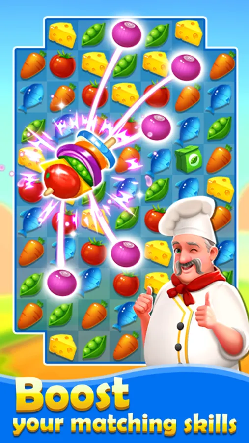 Match at least three of the same color vegetables to meet the tasty goals and complete the levels! Don't forget to use the powerful boosters to Crush your way.