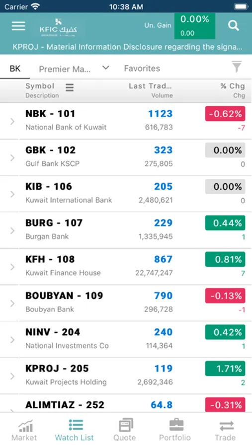 KFICB Mobile App for Trading enables you to directly trade with Boursa Kuwait, GCC and USA markets. To verify your portfolio position. You can create personalized watch lists to keep track of your favorite symbols based on your subscriptions. This application also comes with a chart feature that provides a graphical view of a stock’s performance for pre-defined periods, and price analysis features.
