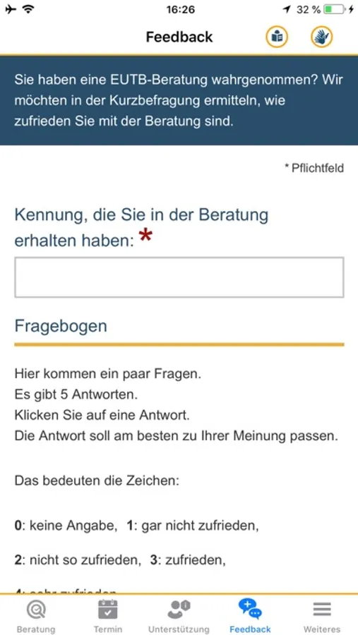 4) Ihr Feedback nachdem Sie ein Beratungsangebot in Anspruch genommen haben dazu abgeben, wie zufrieden Sie mit der Beratung waren und was wir verbessern können,