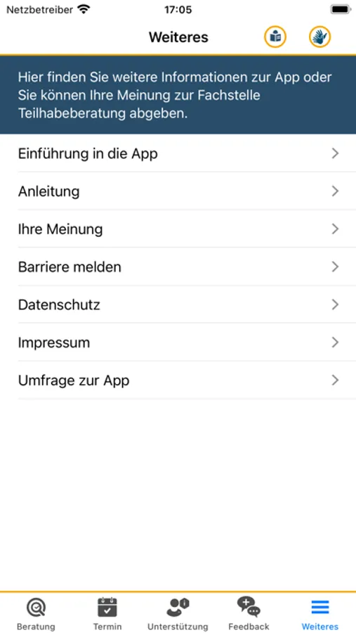 Informationen zum Datenschutz erhalten Sie auf der Website Teilhabeberatung: https://teilhabeberatung.de/app-datenschutz
