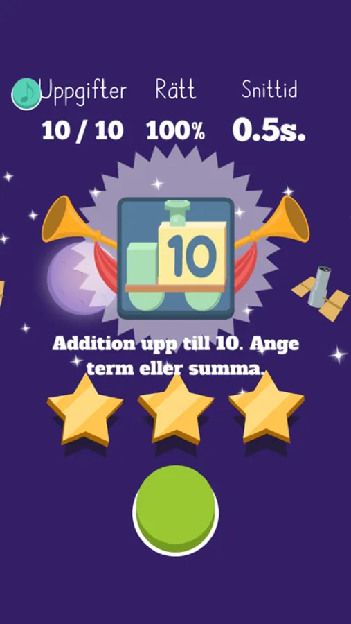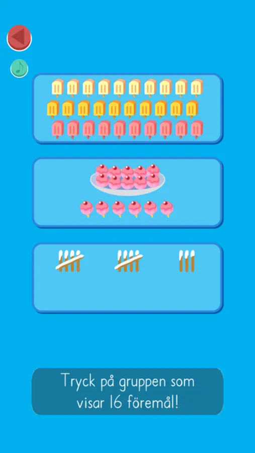 En berättarröst guidar och ger feedback på ett lekfullt sätt för att räkna upp till trettio, öva på talförståelse, matematiska begrepp och inledande addition och subtraktion upp till tio.