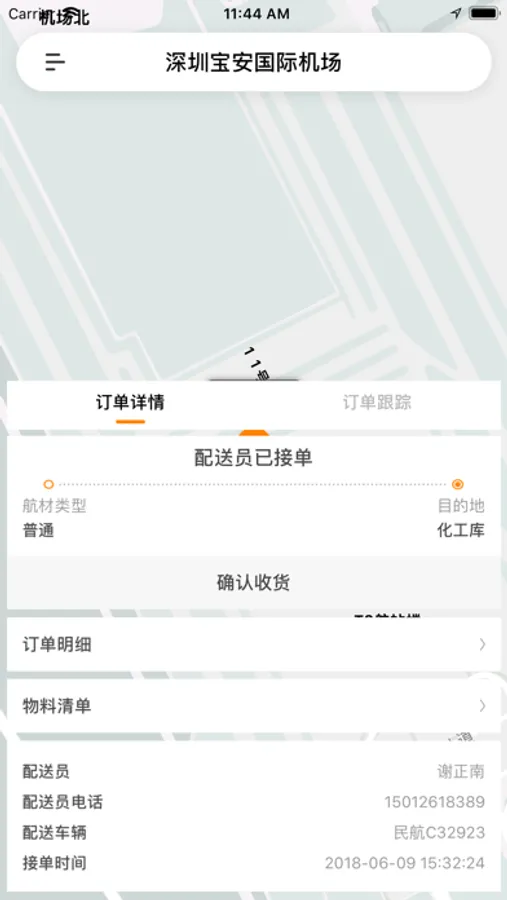 针对国内机场飞机维修,机场的机务人员可以通过我们的App下订单,仓库的配送人员可以去接该订单,进行核料确认后送达物料到指定地点,对比以往我们可以实时的监控该订单的动态,避免一些不必要的事情,提高安全性,对物料和物流的配送进行的更加电子信息化的管理。