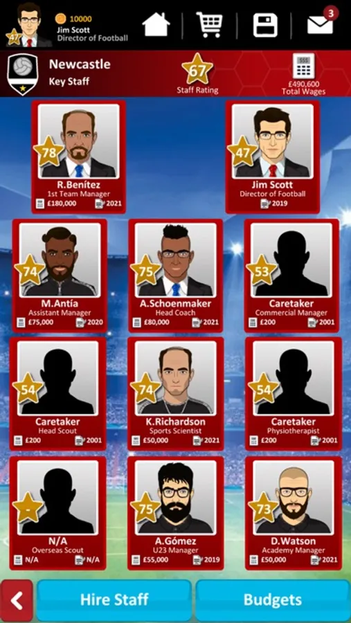 New Staff - U23 Manager, Sports Scientist, Overseas Scout are all added to the game
