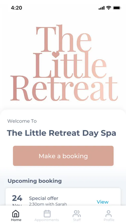 The The Little Retreat Day Spa app makes booking your appointments and managing your loyalty points even easier. You're just a few taps away from feeling good and looking great!