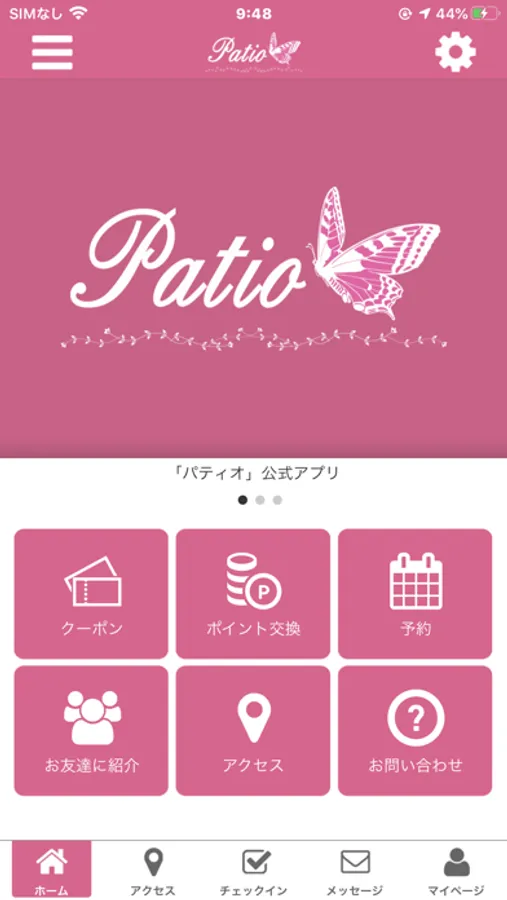 このアプリでは、Patioの最新情報の受け取りや便利な機能を使う事ができます。