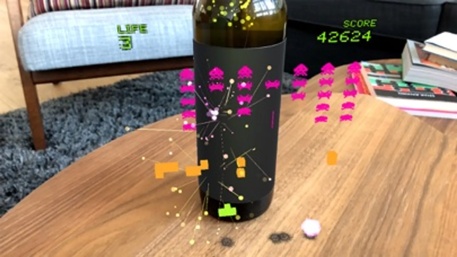 Taste Invasion is a fun way to enjoy a great wine. Play an arcade inspired version of the game without any pre-purchased bottle right in your home or buy a limited edition Eschenhof Holzer "Invader" bottle to play the game directly on the bottles label.