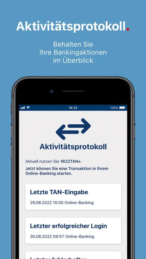 Mit dem 1822TAN+ Verfahren können Sie Ihre Online-Transaktionen direkt über die App freigeben.