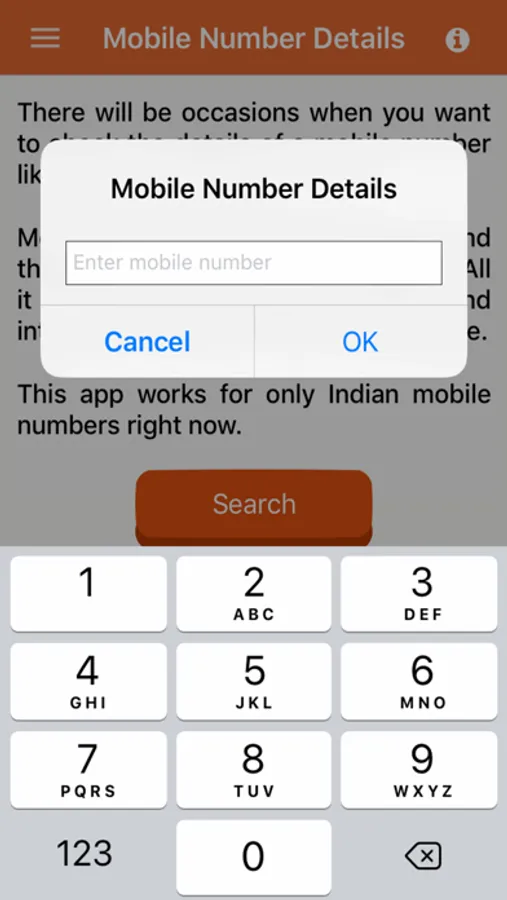 # Search any indian mobile numder details using this app.
