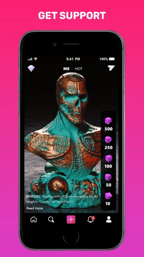 Get Gems (digital currency) from the community instead of traditional likes for your creative works and projects.
