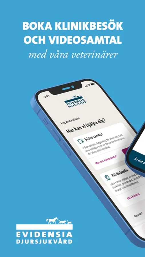 Evidensia always strives to find new solutions that shorten the path to safe veterinary care. The Evidensia app gives you veterinary care with freedom of choice, accessibility and security. Welcome!