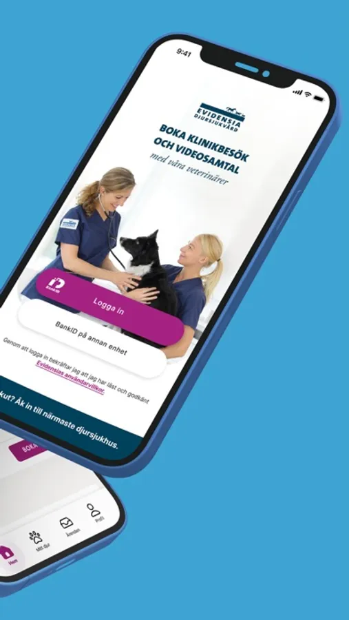 This app is only available in Swedish for Evidensia Sweden customers. Please note that you need a Swedish Bank-ID and a Swedish phone number to access our services.