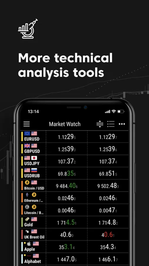 - Live FX, CFD and digital assets quotes (50+ symbols) with Depth of Market (L2)
