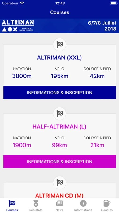 The official app of the Altriman allows you to register on the proposed races, to register your registration to withdraw your bib, to follow the results live.
