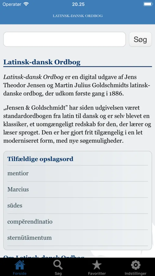 „Jensen & Goldschmidt” har siden udgivelsen og frem til den dag i dag været standardordbogen fra latin til dansk, et uomgængeligt redskab for den, der lærer og læser sproget. Den er her gjort frit tilgængelig i en let moderniseret form, med nye søgemuligheder, bl.a. søgning på bøjningsformer.