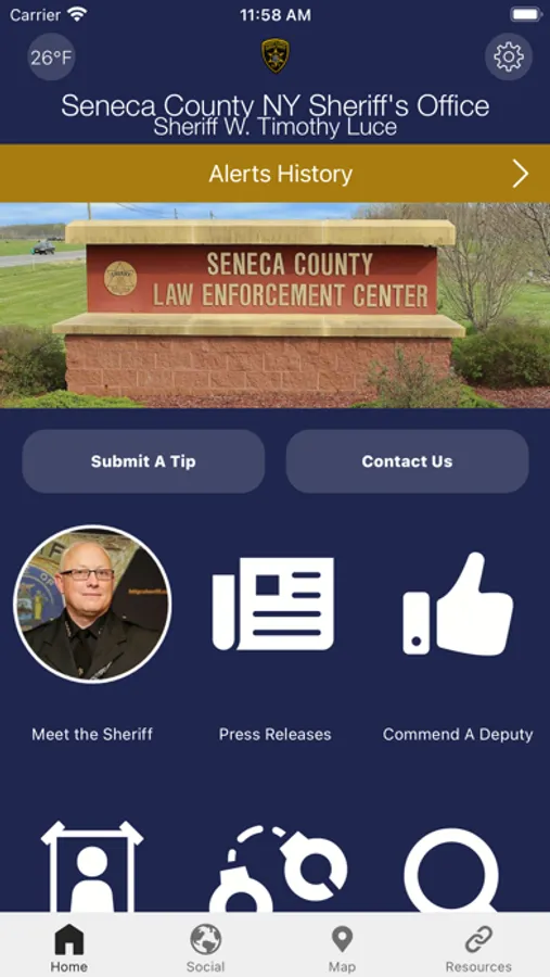 improve our communication with Seneca County residents, businesses, and visitors. Information includes sheriff's office contact information, news, emergency alerts, local weather, inmate search, sex offenders, and Most Wanted. Citizens may Submit a Tip (including photos) directly through the app. See and share social media posts. The Seneca County Sheriff’s Office will use this app to alert, inform, and engage the public as our partners in public safety of our county.