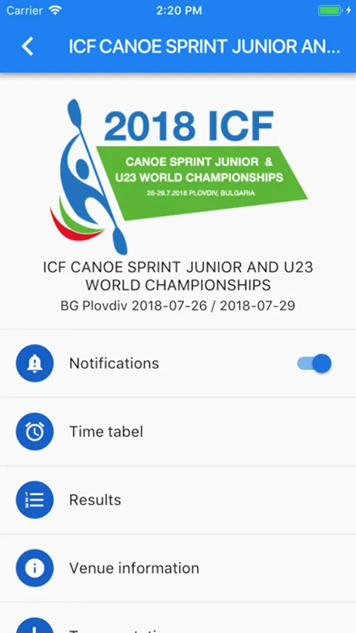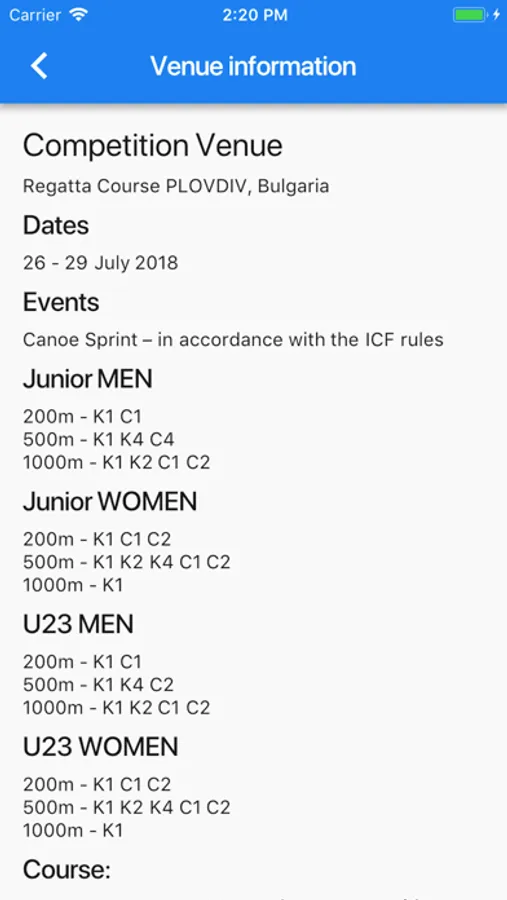 With CanoeInfoApp you can get all the information about the upcoming or past Canoe events. You get all the results in real time, time table, start list, photo finish image for each heat and final.