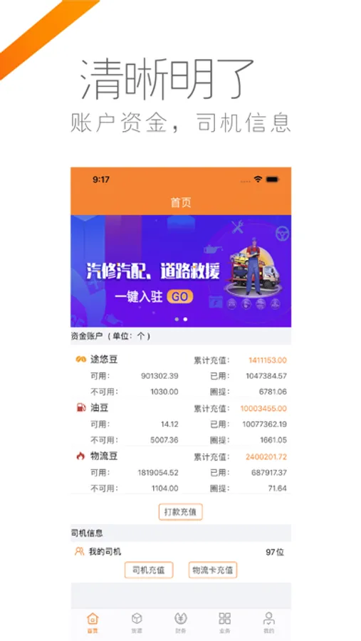 【首页】 - 资金账户,司机信息一目了然