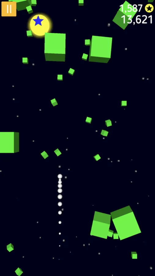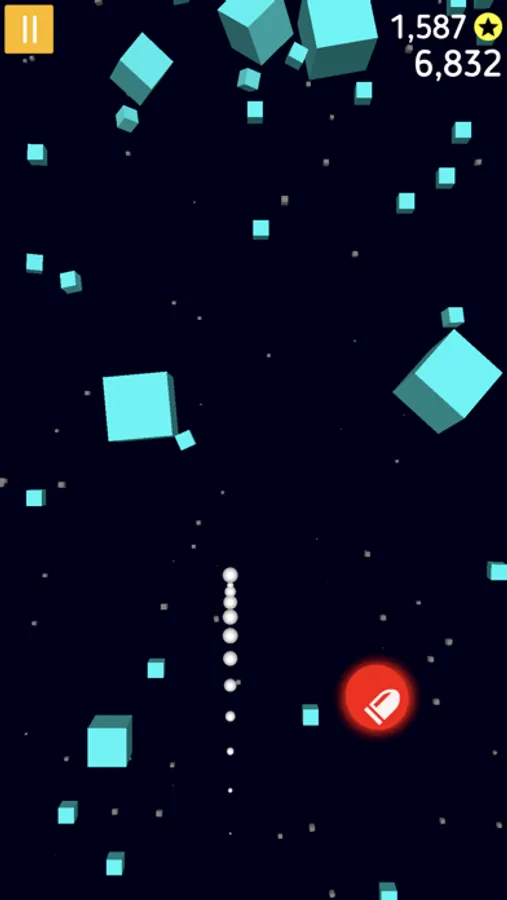 Exciting adventure of the space-ball through the cube debris.
