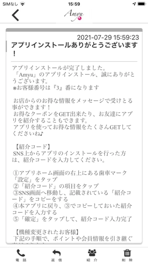 このアプリでは、Amyuの最新情報の受け取りや便利な機能を使う事ができます。