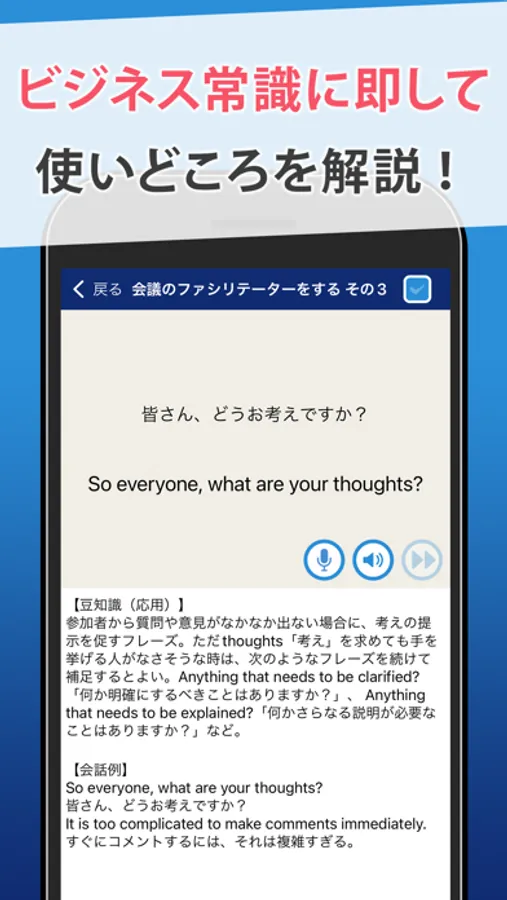 今すぐ現場で使えるビジネス英会話フレーズが満載。ネイティブによる英語音声の聞き流しや、あなたの発音練習・自動採点も!