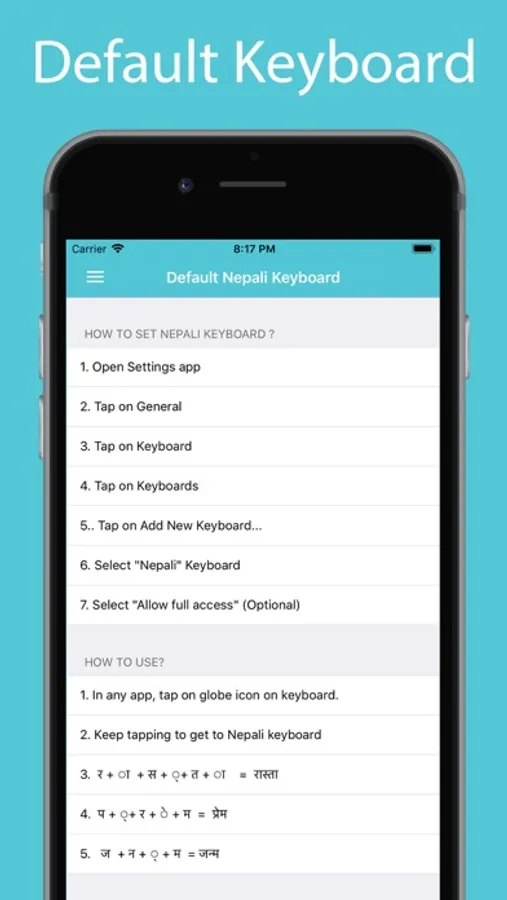Nepali Keyboard is the best feature of this app for Nepali writing. Nepali keyboard app will allow you to write message, story, facebook posts, blogs, Emails in Nepali language. you will find eye catchy and userfriendly Nepali keyboard to write Nepali language. Nepali keyboard has easiest keypad to write Nepali alphabets, letters and words.