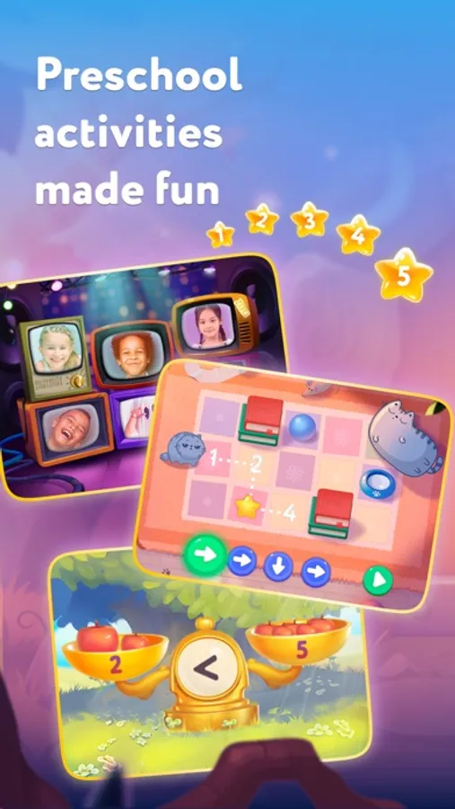 40+ educational games that combine play, skill-building activities, development of key abilities, and pre-school tasks.