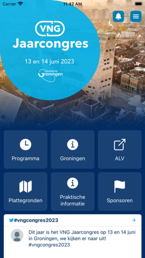 Alle relevante informatie over het VNG Jaarcongres 2023 te Groningen op 1 plek. Markeer uw favoriete programmaonderdelen en ontvang 15 minuten voor aanvang een melding. Gebruik de interactieve plattegronden om de exacte locatie van verschillende exposanten te ontdekken.