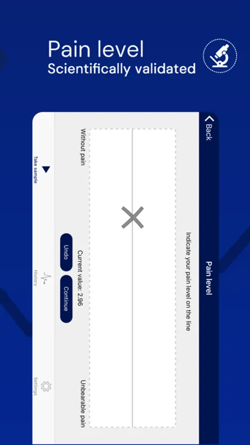 Our team has developed a modern version of the Visual Analogue Scala (pVAS) (https://en.wikipedia.org/wiki/Visual_analogue_scale), called Electronic Visual Analogue Scale (eVAS). The application allows the user to record the level of pain through their device.