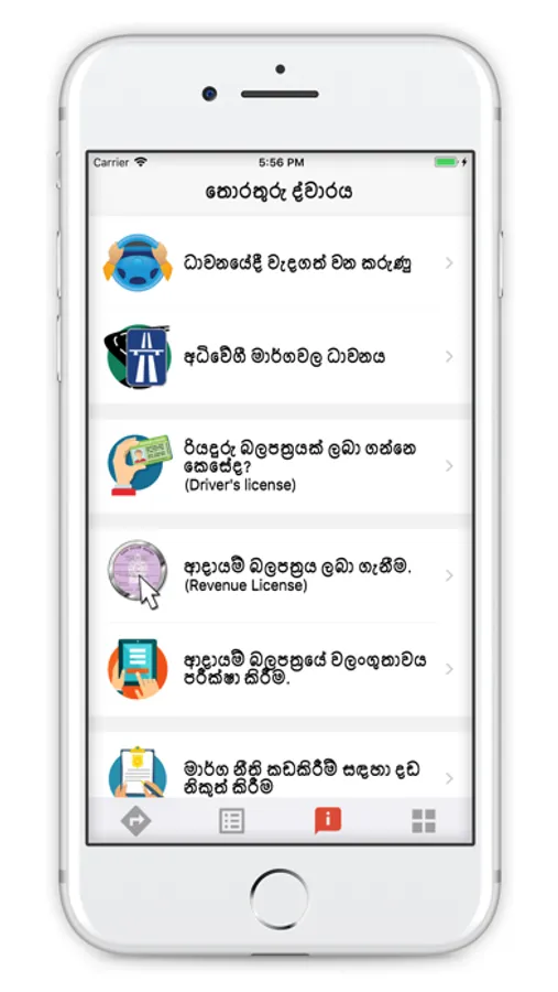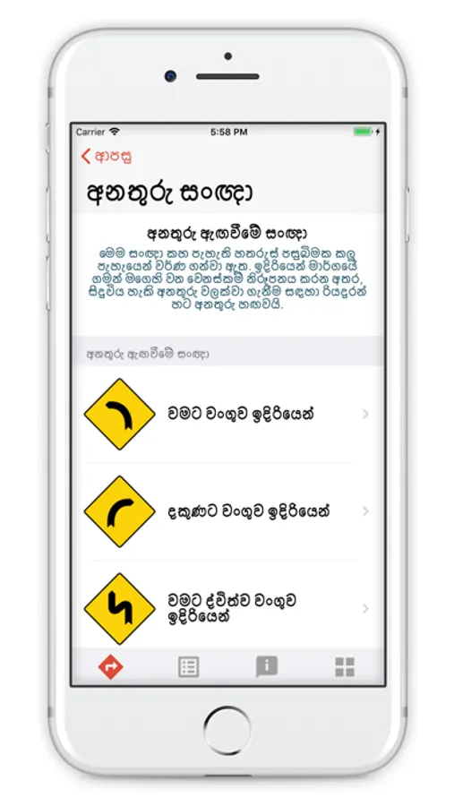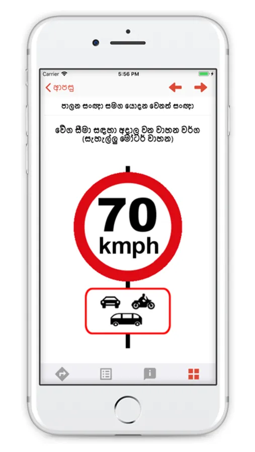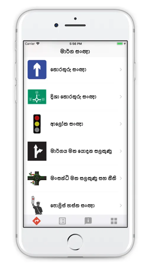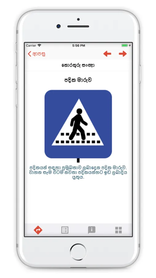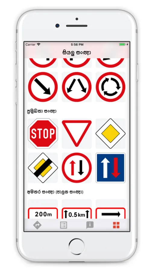This app contains a complete set of road/traffic signs in accordance with the 'THE MOTOR TRAFFIC ACT' of Sri Lanka. All the signs and other information are based on the 'The Gazette of the Democratic Socialist Republic of Sri Lanka (Extraordinary) 2015/11/12'.