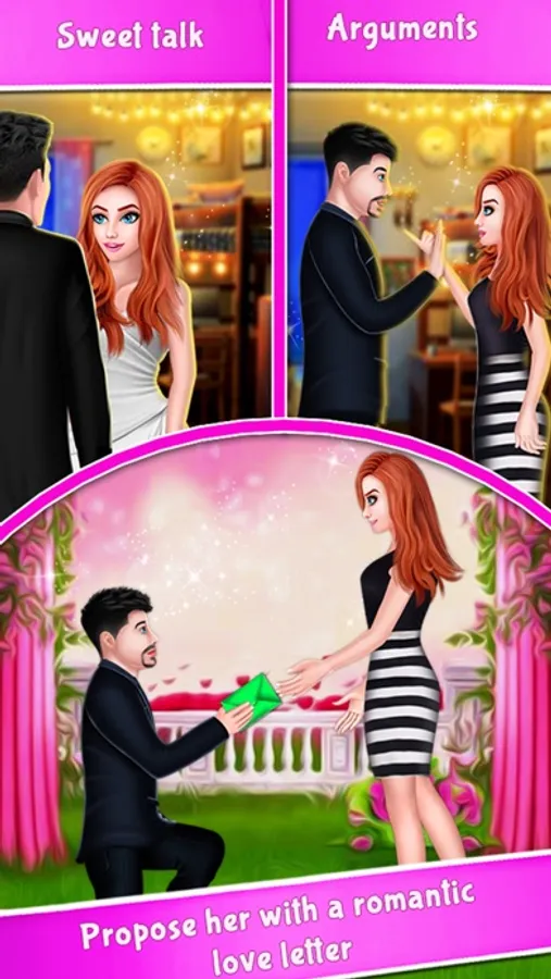 Eve and Shelina are husband and wife. Both are happy with their married life. But one-day Shelina finds Eve talking to her ex-girlfriend. She doubted Eve and they got some arguments on that. Day by day, distances are becoming longer between them. So they decided to sort out this issue from a counselor. The counselor gives the solution to them after that Shelina tried so many things for Eve to make him happy. After some days, Eve forgives Shelina for her doubt. After that day, Eve and Shelina both do lots of things to make another one happy. They go to watch a movie and also went in a fun fair. Both are having an amazing feeling of falling in love with each other again. This journey is full of romantic moments which will give you goosebumps and lots of entertaining tasks to make your spouse happy. Play this marriage life game and don't forget to share your review.