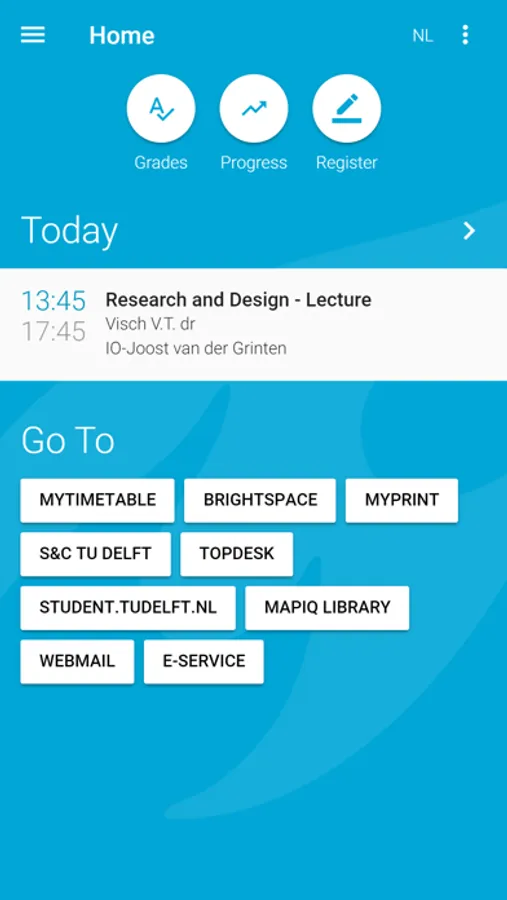 You can access your grades and schedule at any time. You can stay up to date on everything that happens at campus.You can even use the app to register for your exams! Besides all that the app offers you: