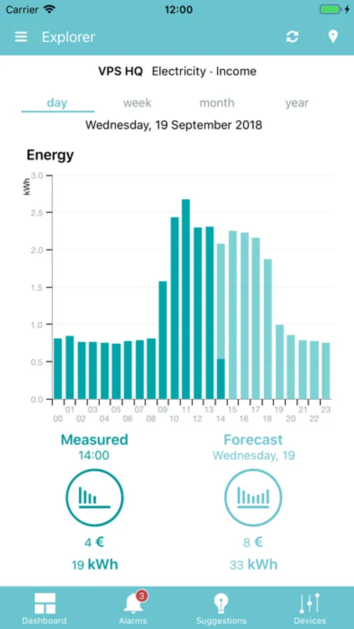 Kisense application is a free application belonging to Virtual Power Solutions S.A. for mobile devices that provides information on energy consumption and allows remote control of energy consuming equipment.