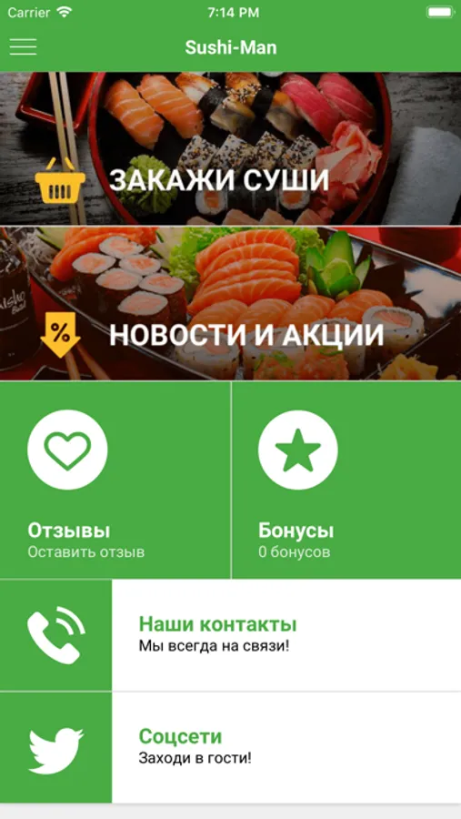 Мобильное приложение Sushi-Man — это новый удобный способ заказать суши и пиццу просто и быстро. Попробовать наши суши, пиццу, роллы стало как никогда просто!