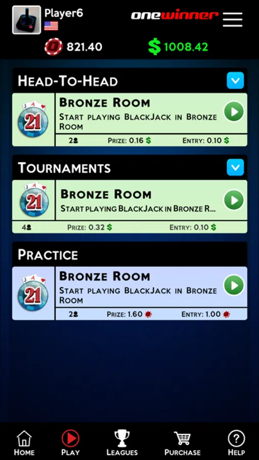 OneWinner's BlackJack is a BlackJack variation in which you can also compete and win real money prizes.