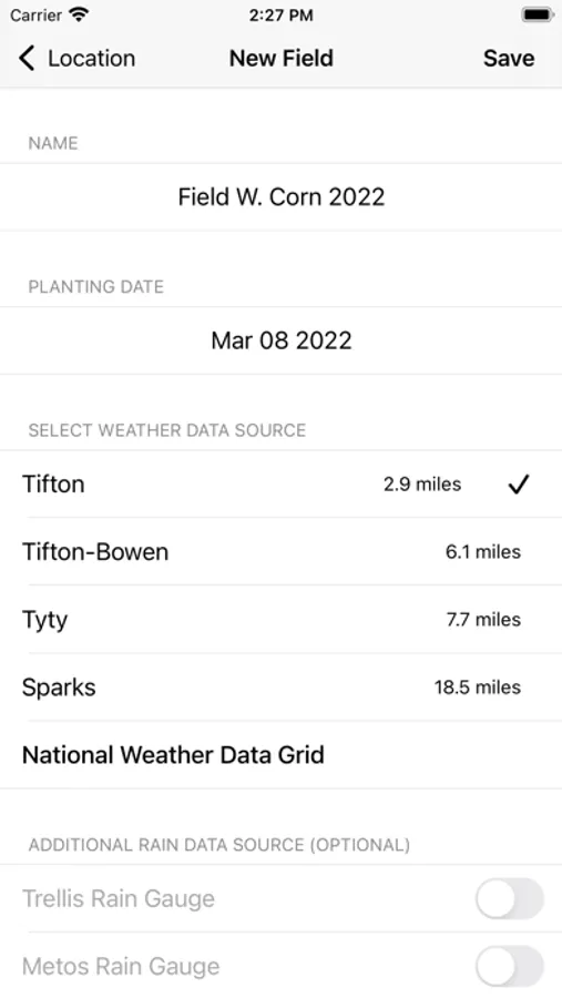 Accurate estimates of precipitation are important for the app to perform well. It is recommended that users install one of the automated rain gauges supported by the app in registered fields. Users must enter irrigation amounts into the app following irrigation events.