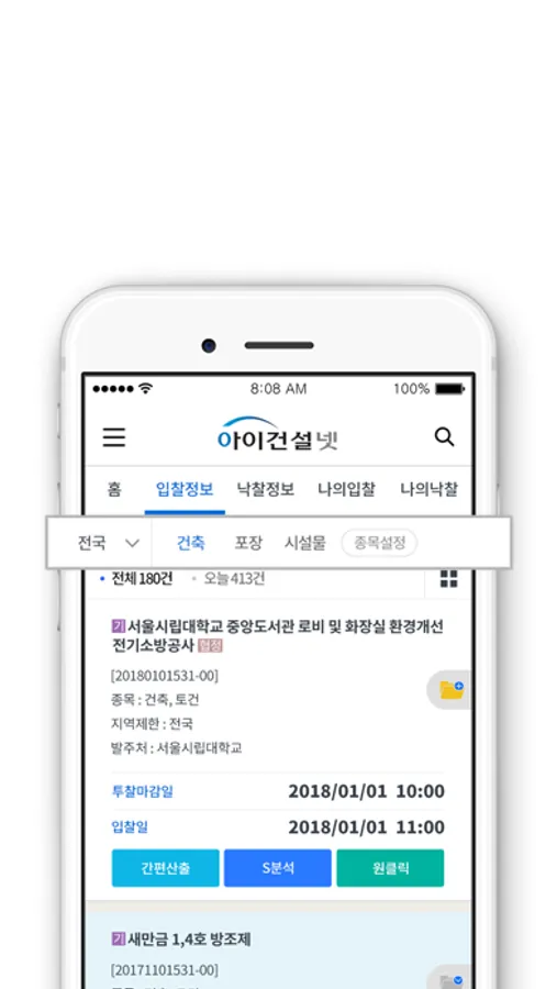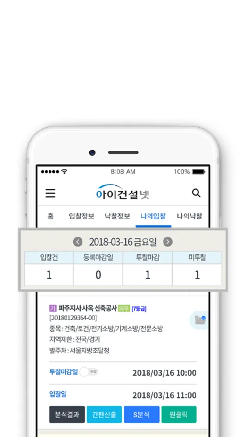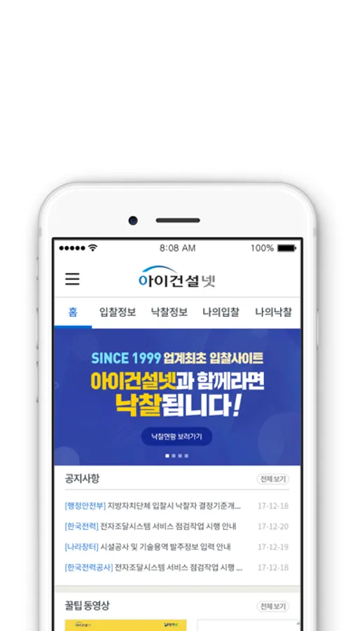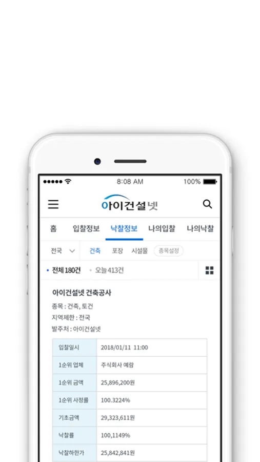 빠르고 편리해진 아이건설넷 앱으로 낙찰에 더 가까워지세요.